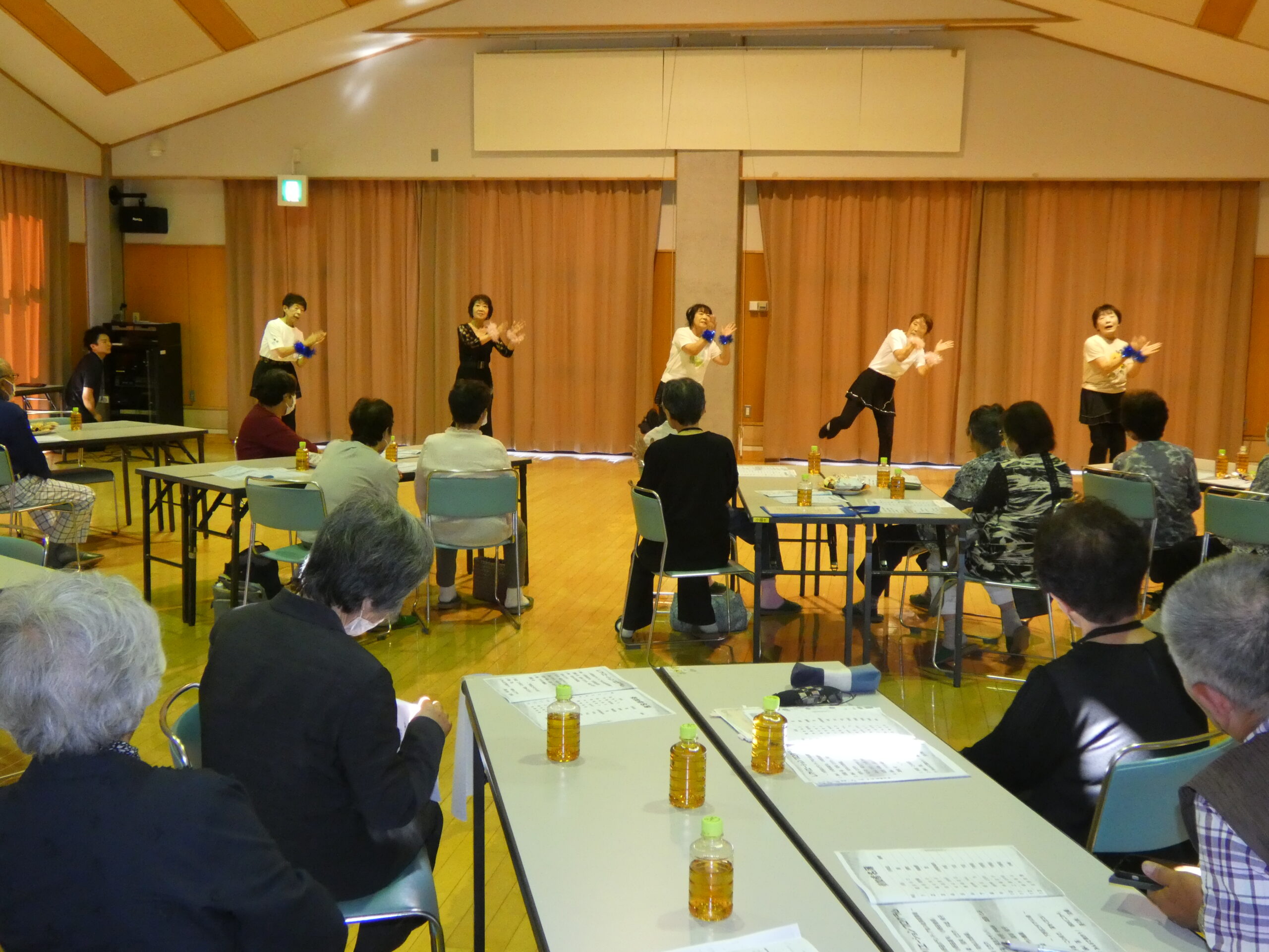 約6年ぶりの開催となった一人暮らし高齢者のつどいでは、中新田地区は鳴瀬小学校の子どもたちとの交流、小野田地区はボランティア友の会演芸部会の皆さんによる舞踊やレクダンス、下野目コデマリの会の皆さんによる手話やハーモニカ演奏、宮崎地区は消費者トラブルや交通安全に関する講話、レクリエーションを行い、昼食には、加美町食生活改善推進員さんやボランティア友の会調理部会の皆さんによる手作りの弁当をいただきました。